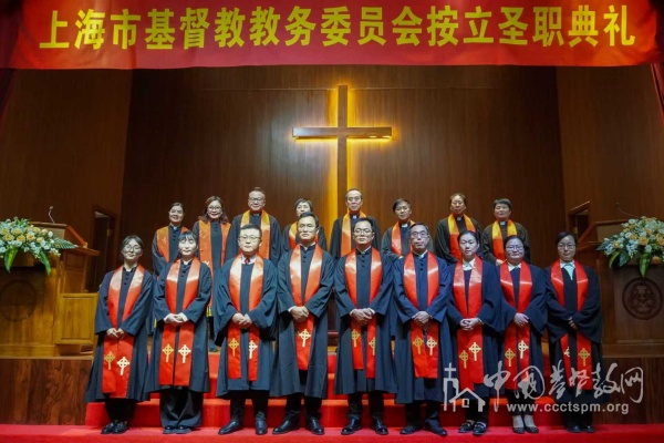 Rev. Yu Guangzhi, President of Shanghai CC, performed the vows of ordination and the laying on of hands for eight ordinands before the congregation. Wang Lipin, Zhang Lude (female), Ma Xiaoxing, Wang Yan (female), Zhang Yan, Hu Shun, Li Jing (female), and Qian Ying (female) were ordained as pastors; Li Xiaofang (female) was ordained as an elder. The senior pastor also bestowed stoles and bibles upon the newly ordained. The ceremony concluded with a benediction by a new pastor.
